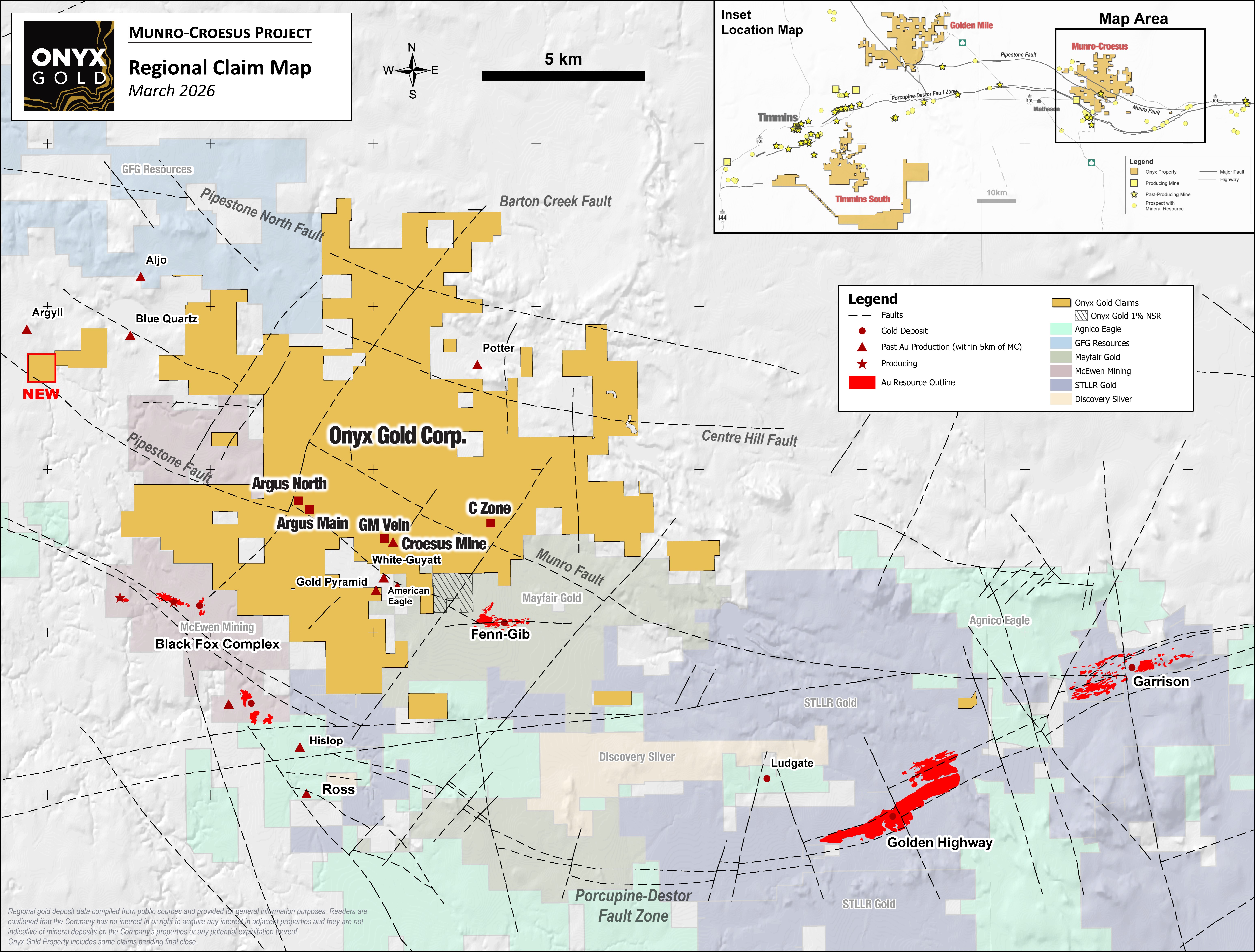Vancouver, British Columbia--(Newsfile Corp. - March 31, 2026) - Onyx Gold Corp. (TSXV: ONYX) (OTCQX: ONXGF) ("Onyx" or the "Company") is pleased to report new drill results from the Company's fully-funded 75,000-meter drill program (the "Program") at its 100%-owned Munro-Croesus Project ("Munro-Croesus" or the "Project"), located 75 km east of Timmins, Ontario (Figure 4).