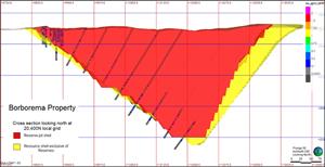 Below is a cross section show the Mineral Resource pit vs. the Mineral Reserve pit shell.