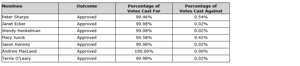 The directors listed as nominees in the management information circular dated Dec. 30, 2025, were elected as directors of the company until the next annual meeting of shareholders.