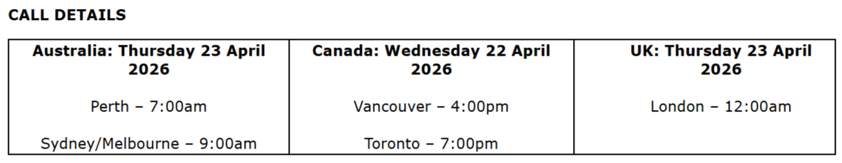 Perseus Mining Ltd. is hosting an investor webinar and conference call to discuss its March, 2026, quarterly results, which are anticipated for release around 8:30 a.m. AEST (Australian Eastern Standard Time) on Thursday, April 23, 2026.