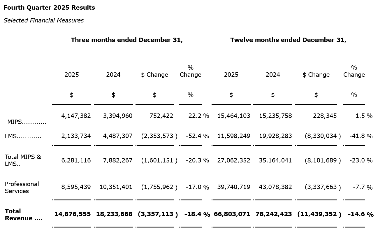 - Managed and IP solutions (MIPS) revenue increased 22.2 per cent to $4.1-million in Q4 2025 from $3.4-million in Q4 2024, related to growth, and was delivered largely through the expansion of transactional SKUs (stock-keeping units);