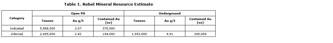 The total MRE includes 370,000 ounces of indicated gold and 439,000 ounces of inferred gold from a combination of open-pit and underground resources (see table 1). The Rebel deposit represents a significant gold asset for Renegade within the Red Lake mining district of Ontario.