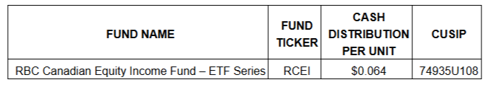RBC Canadian Equity Income Fund has declared April, 2026, cash distributions for unitholders of ETF (exchange-traded fund) series of RBC funds, as follows.