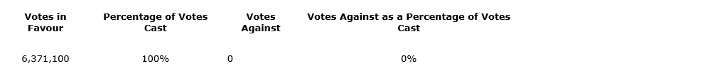 In particular, shareholders of the corporation voted in favour of the following resolutions.