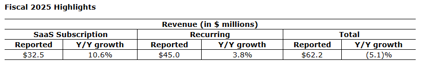 SaaS (software-as-a-service) ARR (annual recurring revenue) up 9 per cent Y/Y (year over year) to $33.8-million;