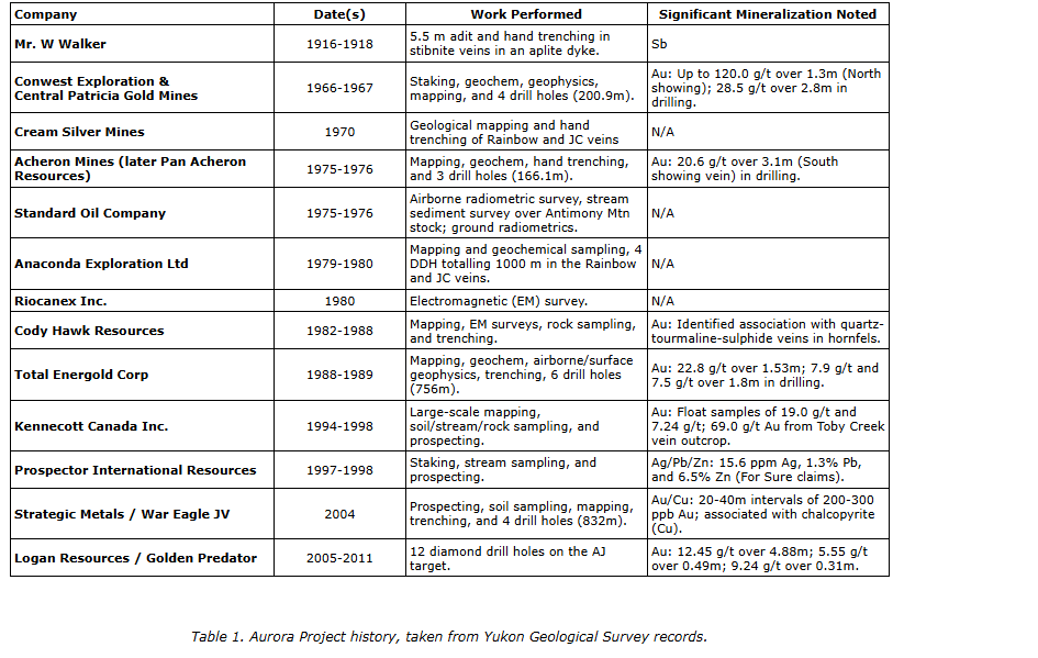 "Equally significant is today's confirmation that we have received TSX Venture Exchange approval for our acquisition of the Aurora project from Shawn Ryan. Having Shawn as our project partner and adviser, a renowned explorer and prospector responsible for multiple significant discoveries in the Yukon, gives me enormous confidence in the project and its potential."