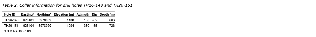 - Drill hole TH26-148 was drilled to the south near drill hole TH25-145 and intersected: