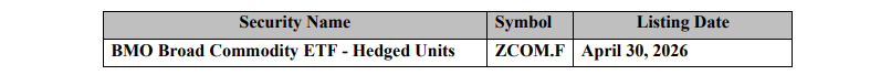 Subject to confirmation of closing, the hedged units of the BMO ETF will be listed and available